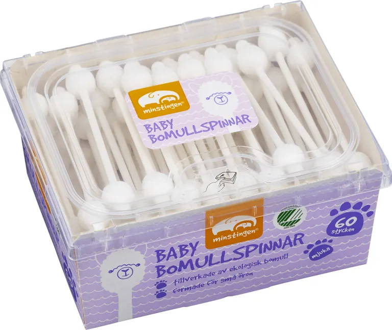 Mjuka bomullspinnar tillverkade av 100% ekologisk bomull, odlad helt utan kemikalier. Våra bomullspinnar är formade för din vildings små öron.