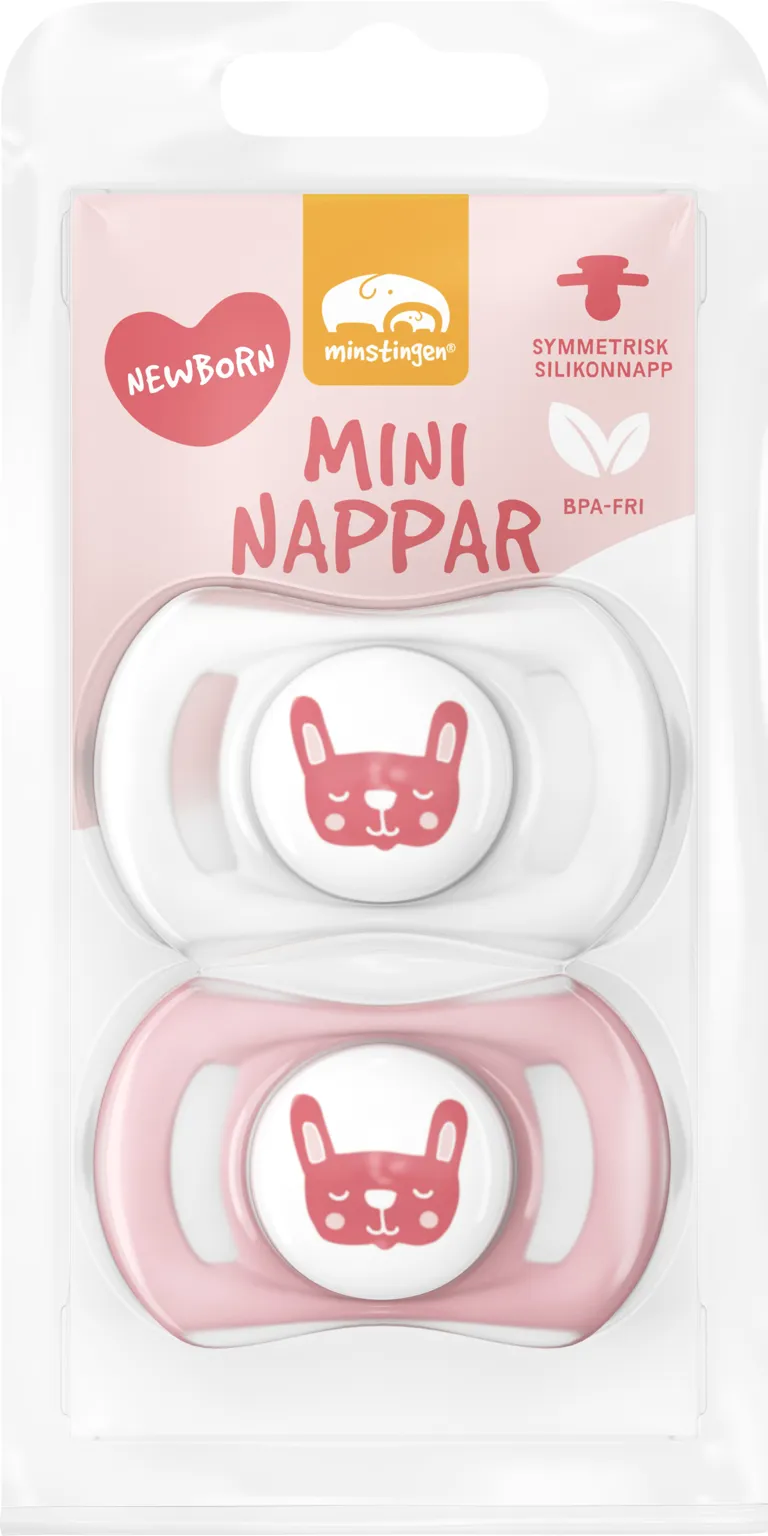 Napp för nyfödda barn med symmetrisk sugdel i mjuk silikon. Nappen har rillor som ger ett bra luftflöde mot huden. Den är skön och luftig och ligger bra mot läpparna. Förpackningen innehåller två stycken nappar med dekor på vildingen Kurre Kanin. Material: BPA-fri napp med sköld av polypropen (PP) och sugdel i silikon av medicinsk kvalitet eller naturlatex.